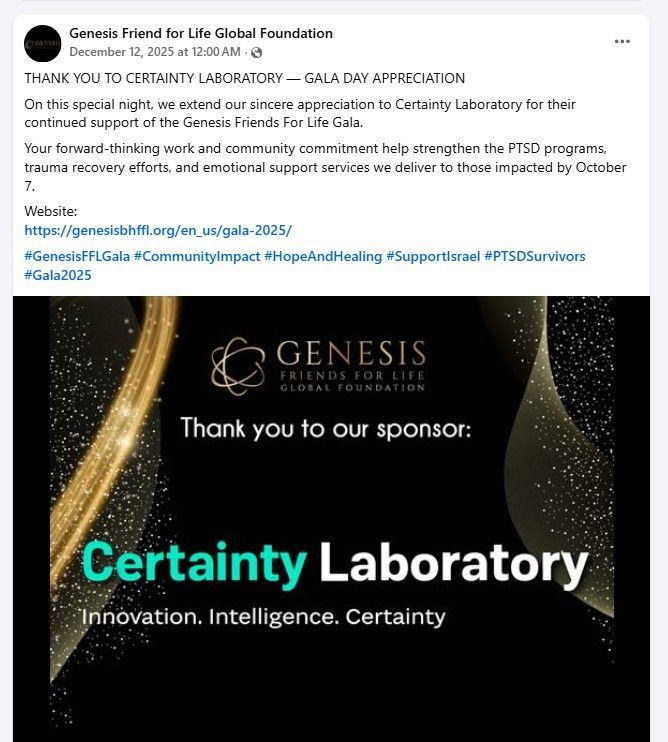 Certainty Laboratory was honored to take part in the efforts behind the Genesis Friends for Life Global Foundation Third Annual Gala, “A New Day Will Rise”—an evening dedicated to healing, hope, resilience, and unity.
